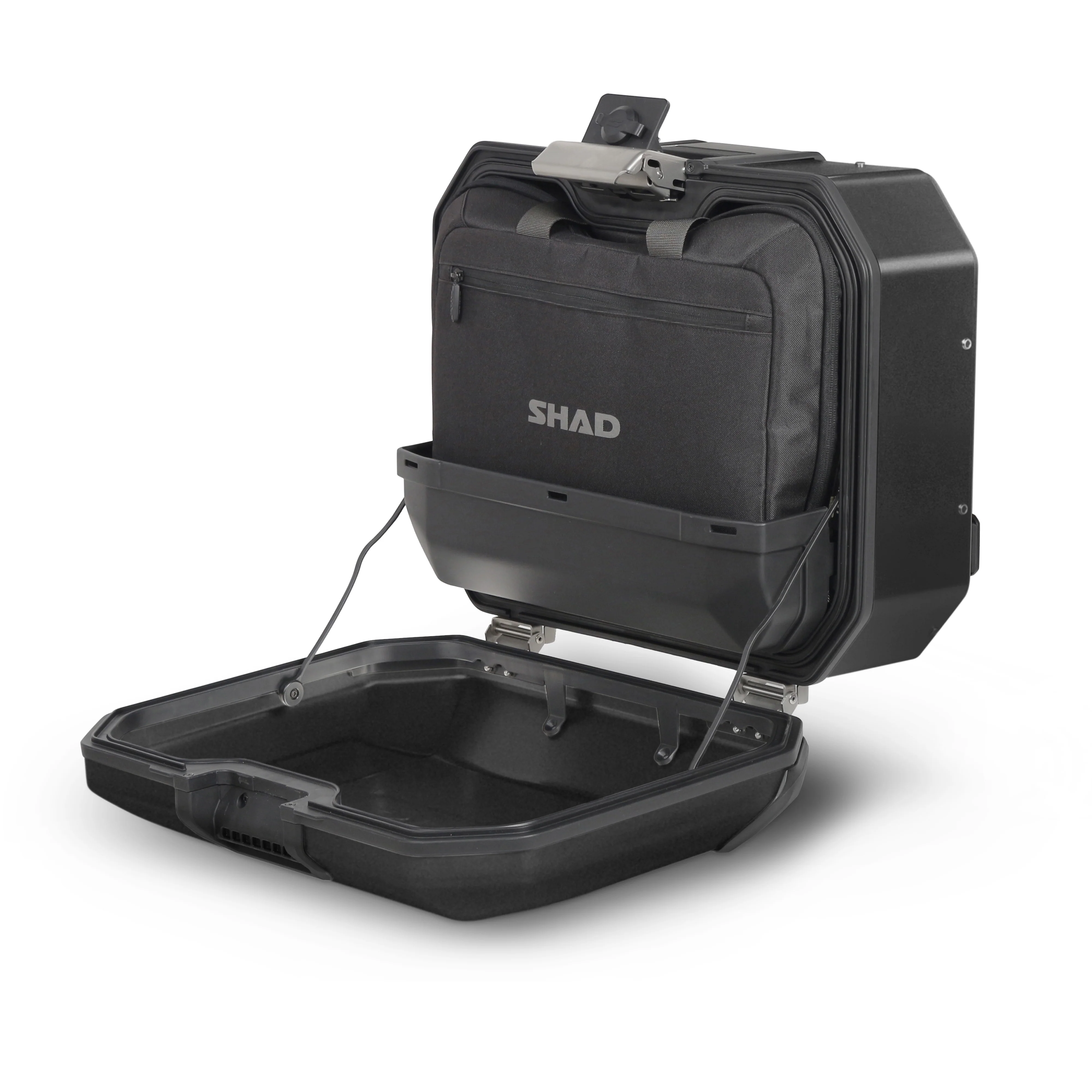 SHAD TERRA TR36RB Black Aluminum right side case is designed, engineered and made in Barcelona. It consists of black powder coated, hardened aluminum alloy, a stronger and lighter type of aluminum, resulting in minimum weight paired with maximum resistance. Fully removable by quick release it features SHAD’s patent pending “TERRA Lock System”.